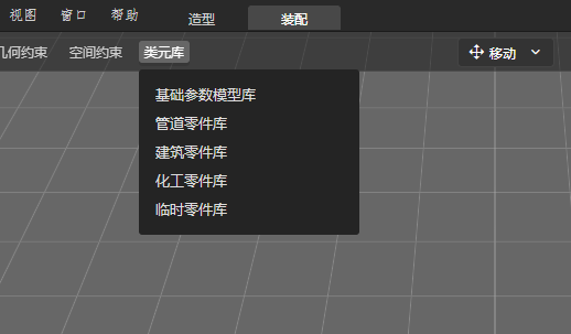 装配界面用于组装零件和查看装配体,支持对装配体进行旋转、缩放、平移等操作,支持对装配体进行约束操作,支持对装配体进行局部更新操作。