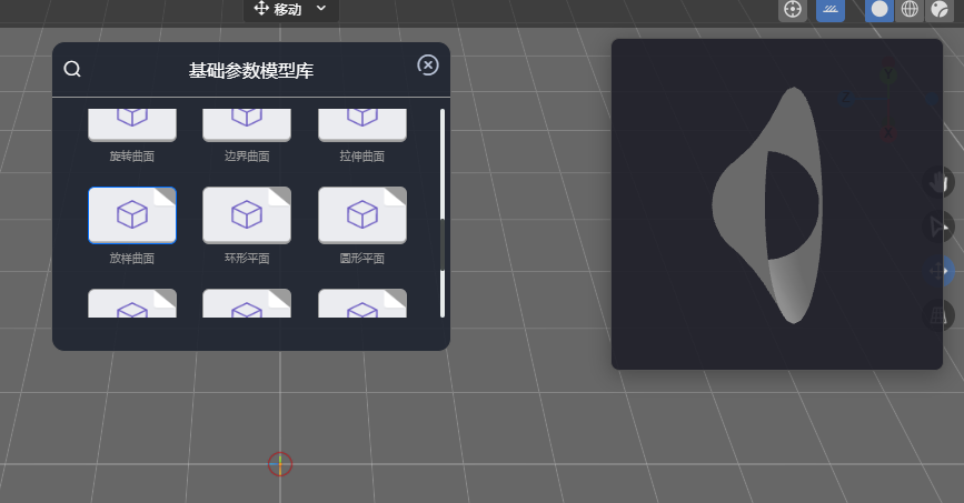 - 闭合线转面(快捷键 I):选择一个或多个闭合的线条(可包含内部的孔),自动生成对应的平面模型。适用于将草图中的封闭区域快速转换为面片,便于后续三维建模操作。