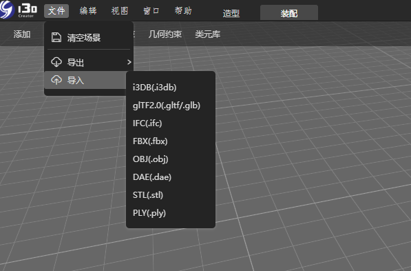 - 点击左上角文件菜单按钮,选择导入,根据类型导入外部零件。