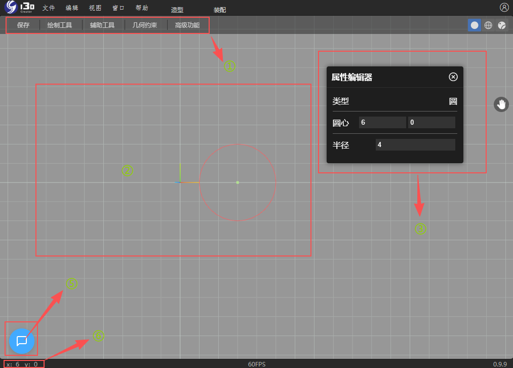 - 圆形:(快捷键 C)点击第一个点作为圆心,第二个点确定半径,自动绘制并结束。