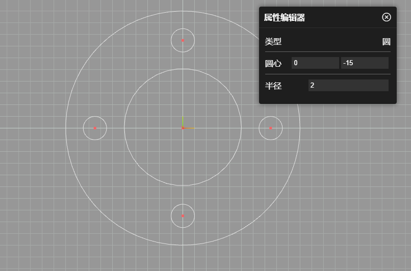 分别在 [-15,0]、[15,0]、[0,15]、[0,-15] 位置绘制四个半径为 2